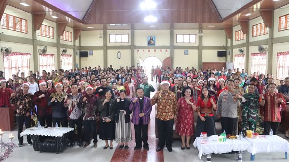 “Dengan tema hari ini Allah hadir menyelamatkan keluarga, bagaimana kita bisa merasakan lawatan Tuhan jika kita berkenan menghadirkan Tuhan dalam keluarga. Bagaimana kita bisa menghadirkan secara pribadi. Pesan natal hari ini, mari kita saling menopang, saling menolong ditengah keterbatasan kita. Allah hadir memberikan kepastian, keselamatan, kesehatan jasmani dan rohani,” kata pendeta dalam khotbahnya.