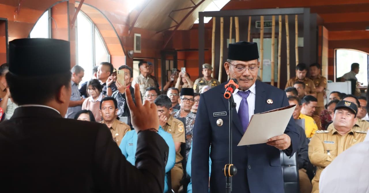 DAIRI, dailyutama.id – Bupati Dairi Vickner Sinaga melantik Direksi Perusahaan Umum Daerah (Perumda) Pembangunan Kabupaten Dairi periode 2025 – 2030 pada Senin (15/9/2025) di Bahtera Nuh Taman Wisata Iman (TWI) Sitinjo. Pelantikan Direksi Perumda dihadiri oleh Wakil Bupati Dairi Wahyu Daniel Sagala, Kajari Dairi Cahyadi Sabri, Wakapolres Dairi Kompol Dearma Munthe dan Perwakilan Kodim 0206 Dairi.