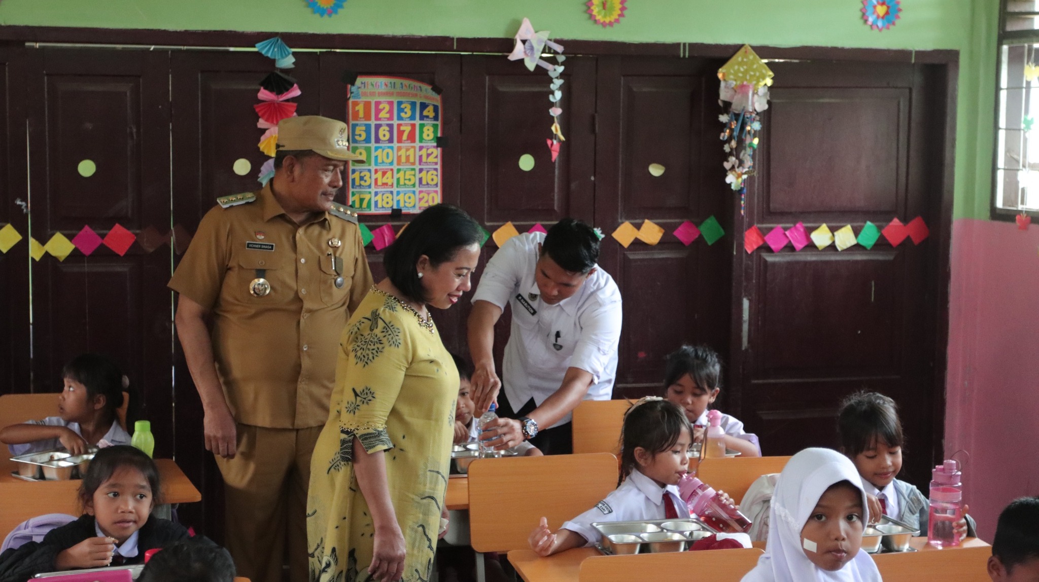 Tidak hanya monitoring dapur, Bupati dan rombongan juga memantau pendistribusian MBG di UPT SD 030319 Sumbul Karo, Kecamatan Tigaligga.