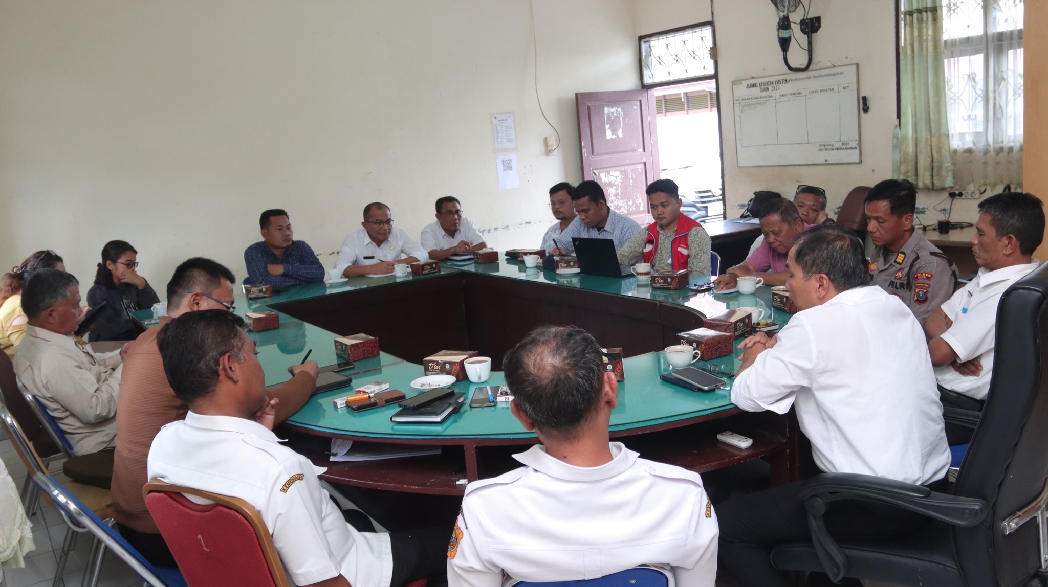Turut hadir dalam pertemuan tersebut Asisten Pemerintahan dan Kesejahteraan Rakyat Agel Siregar, Asisten Administrasi Umum Dapot Tamba, Kepala Bagian Perekonomian Lipinus Sembiring, Perwakilan dari Polres Dairi.(adm)